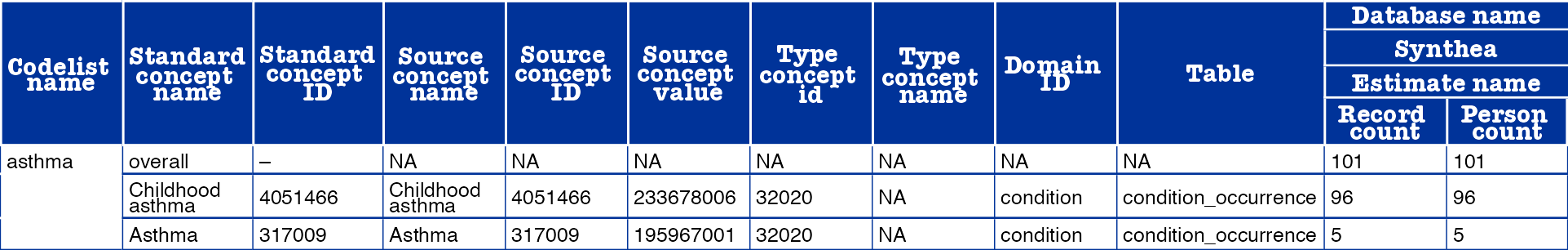 tableCodeUse(asthma_code_use, type = "flextable", style = "darwin")