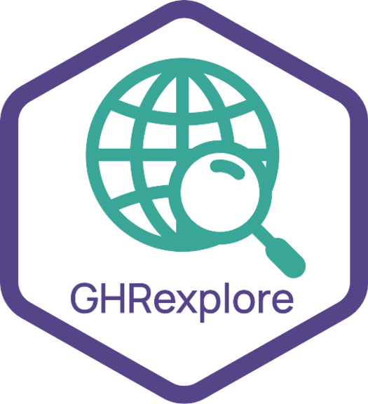 GHRexplore is an R package for exploratory analysis of temporal and spatio-temporal health data including case counts, incidence rates, and covariates. It provides commonly used visualizations and supports standard data transformations such as temporal and spatial aggregations. The package also offers extensive customization options for the resulting figures. Currently available plotting functions include: