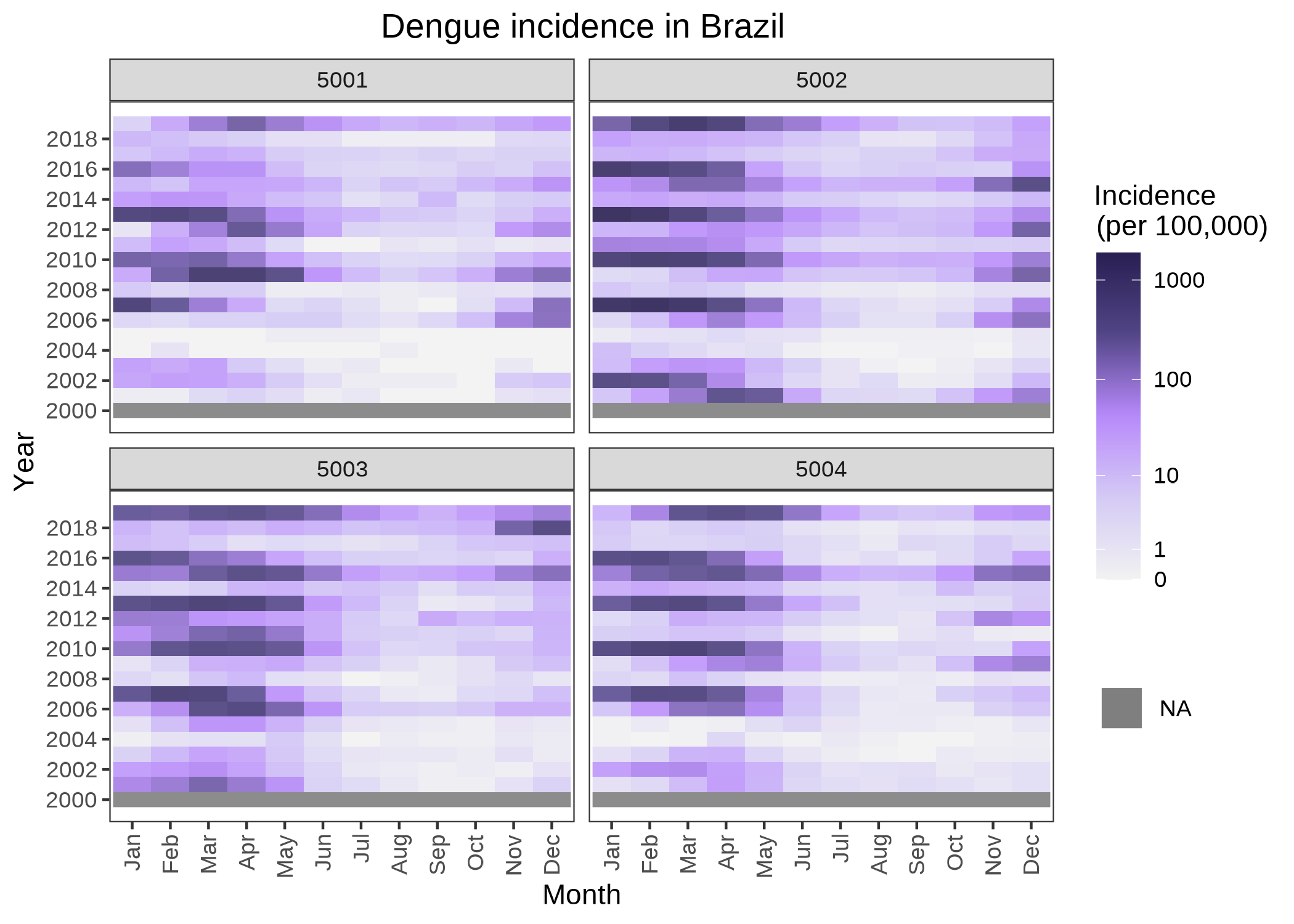 counts or incidence rates as heatmaps.plot_seasonality: Plots yearly time series to detect