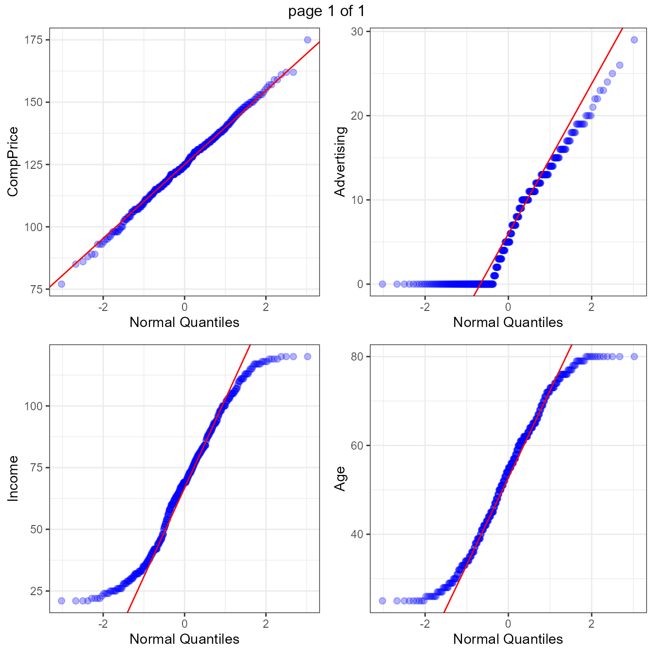 Quantile-quantile plot for numeric variables