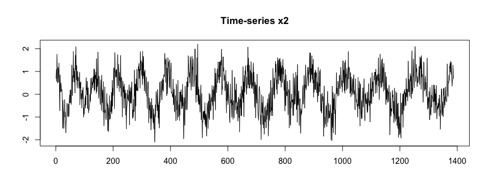 plot(x2, type = "l", xlab = "", ylab = "", main = "Time-series x2")