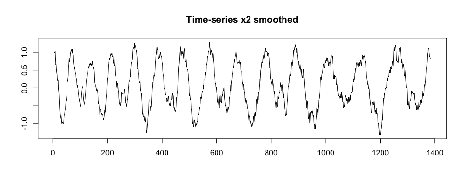 type = "l", xlab = "", ylab = "", main = "Time-series x2 smoothed")
