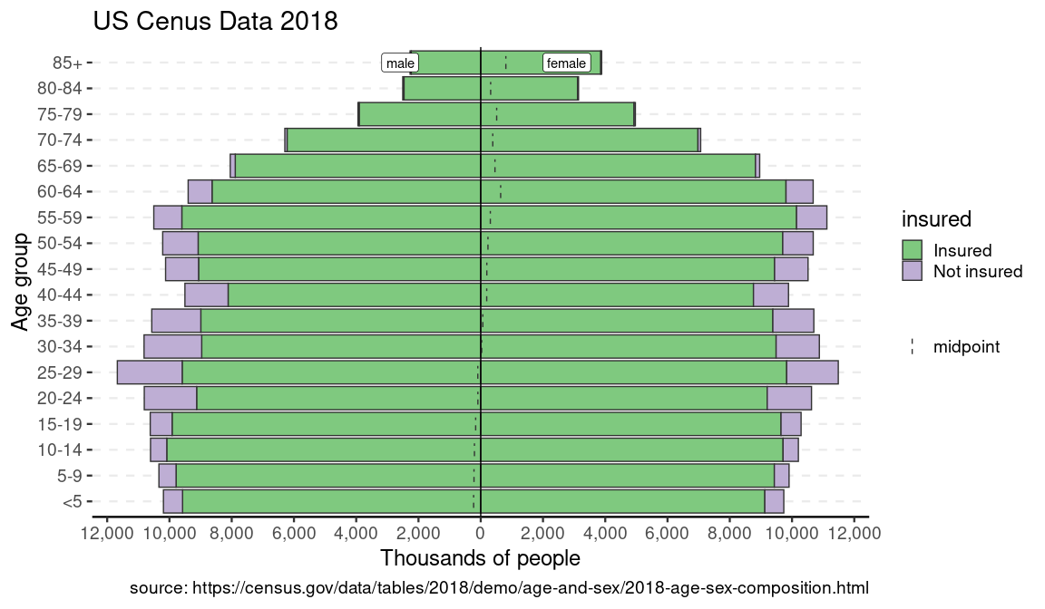 p_ins <- age_pyramid(us_ins_2018, age_group = age, split_by = gender, stack_by = insured, count = count)