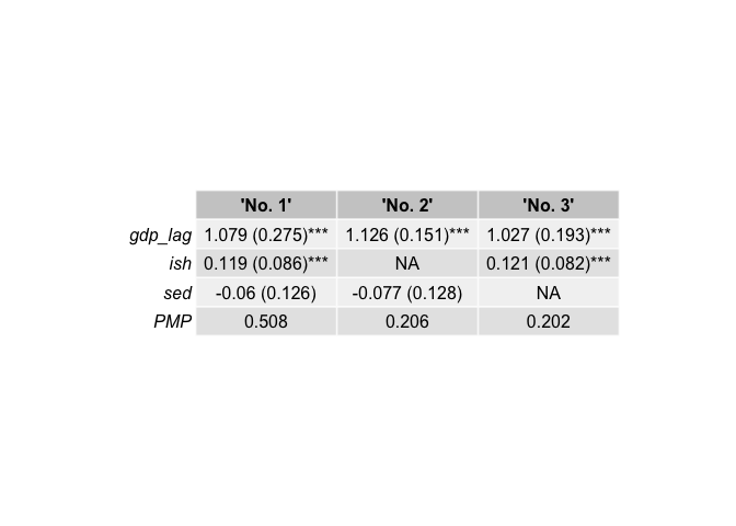 #> gdp_lag "1.079 (0.111)***" "1.126 (0.106)***" "1.027 (0.093)***"