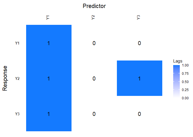 VARcv <- sparseVAR(Y = scale(Y), selection = "cv")