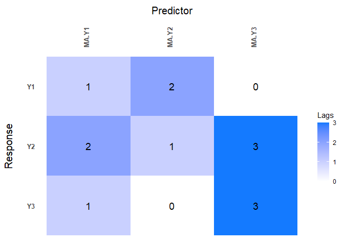 VARMAcv <- sparseVARMA(Y = scale(Y), VARMAselection = "cv")
