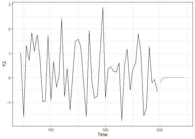 #> [1,] 1Note that all diagnostics functions discussed for the VAR, VARMA, VARX cases also work for univariate cases; so do the forecasting functions.