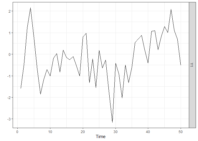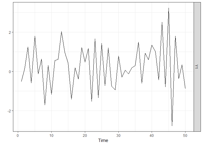 #> [1,] 2We start by generating a time series of length n = 50 from a