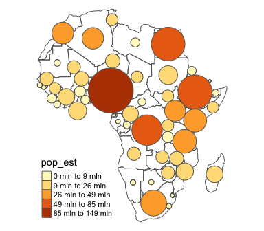 tm_shape(afr_dorling) + tm_polygons("pop_est", style = "jenks") +