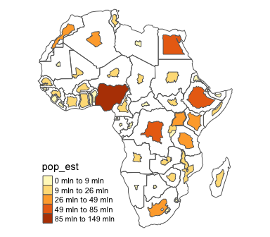 tm_shape(afr_ncont) + tm_polygons("pop_est", style = "jenks") +