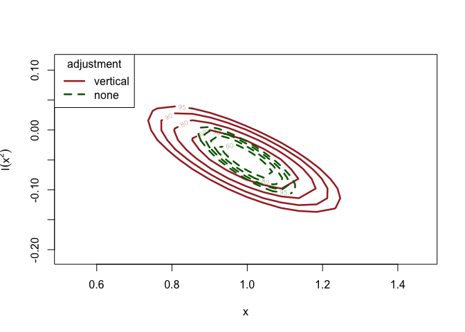 #> 95% confidence intervals, adjusted loglikelihod with type = ''vertical''