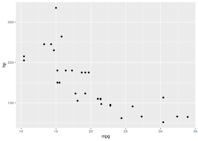 plot_1 <- ggplot(data = mtcars) + geom_point(aes(y = hp, x = mpgg))