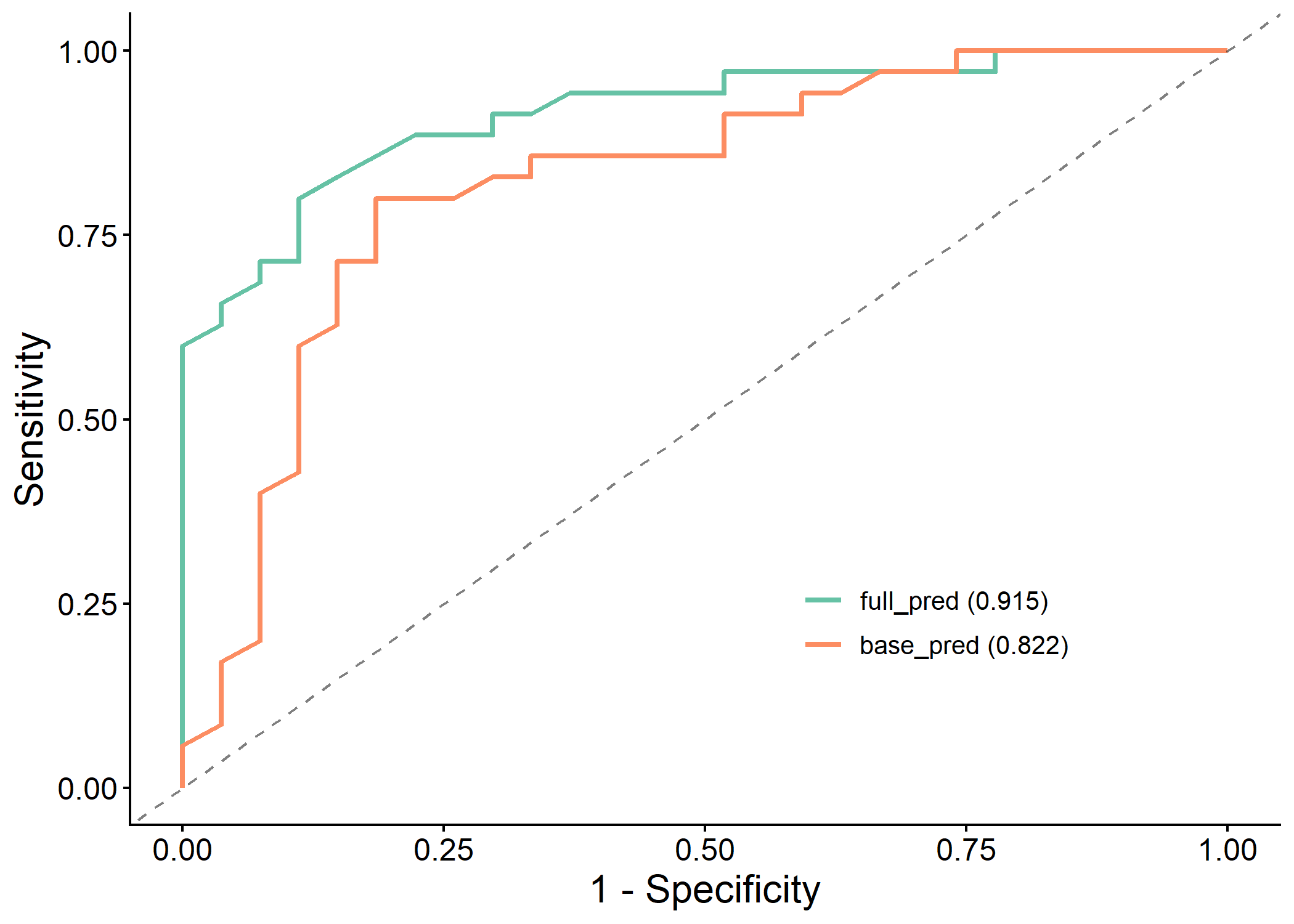 results <- classif_model_compare(df, "dead", c("base_pred", "full_pred"), save_output = FALSE)