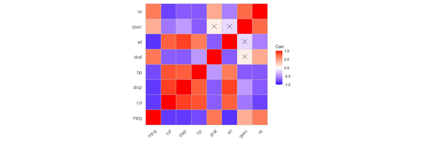 #> qsec  .55** -.74*** -.62*** -.80***  -.05      -   .79*** -.49**  -.39* -.65***