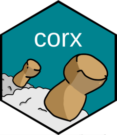 ‘corx’ aims to be a Swiss Army knife for correlation matrices. Formatting correlation matrices for academic tables can be challenging. ‘corx’ does all the heavy lifting for you. It runs the correlations, and stores all relevant results in a list. Results can be formatted into data.frames which can then easily be rendered into tables in a variety of formats.