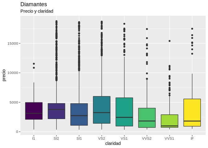 labs(title = "Diamantes", subtitle = "Precio y claridad")
