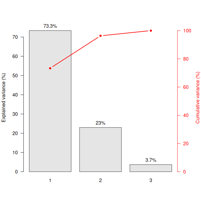 screeplot(X, eigenvalues = FALSE, cumulative = TRUE)