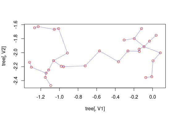 out <- ComputeMST(d, verbose = FALSE)## simple 2D plot: