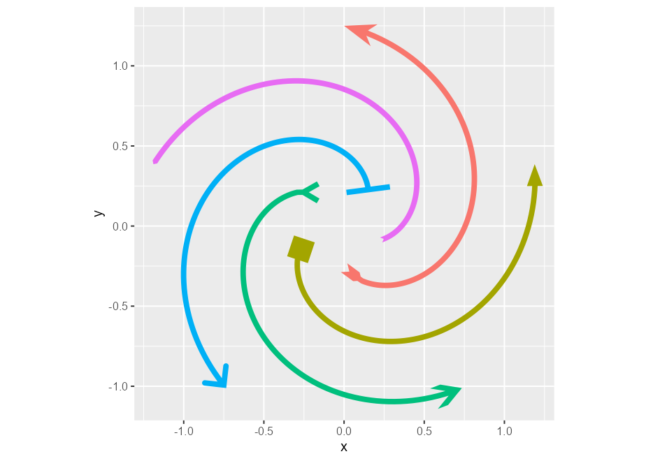 p + geom_arrow(aes(arrow_head = group, arrow_fins = group), linewidth = 2) +