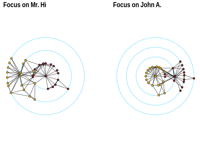 p2 <- ggraph(karate, layout = "focus", focus = 34) +