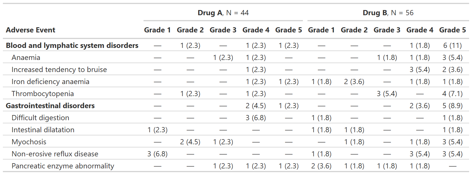 Summarize Adverse Events by Grade