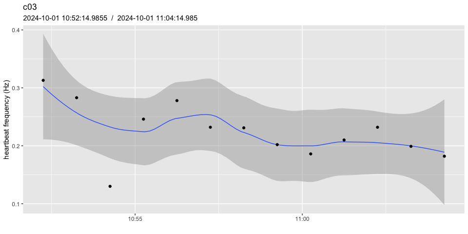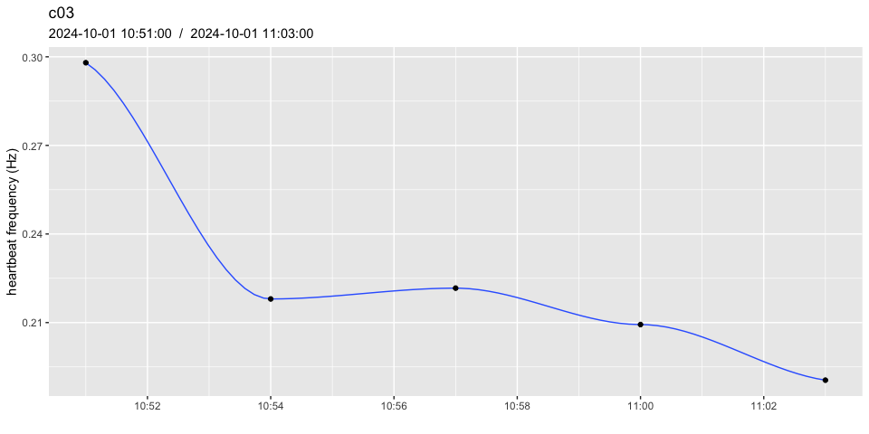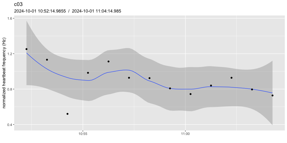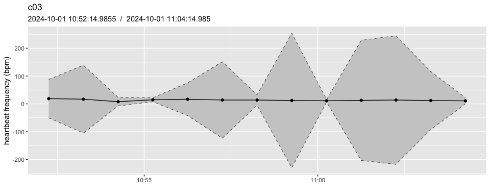 #> # ℹ 3 more variables: d_r <dbl>, d_f <lgl>, keep <lgl>It’s important to check the quality of the data and of the heart beat frequency estimates.