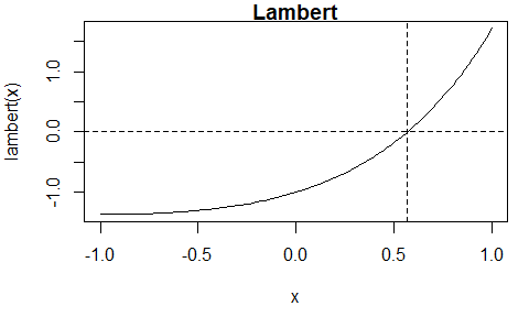 library(itp)The Lambert function \(l(x) = xe^x - 1\) is continuous.