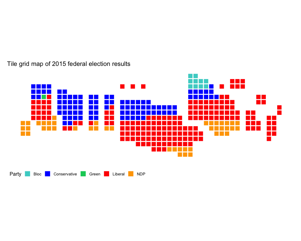 Tile grid map of Canadian federal electoral ridings