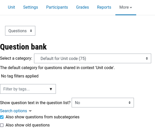 When adding a question, select “from question bank” (or “a random question” for random questions within categories).
