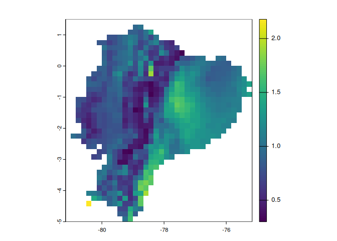 #> extent : -81.16667, -75.16667, -5, 1.5 (xmin, xmax, ymin, ymax)