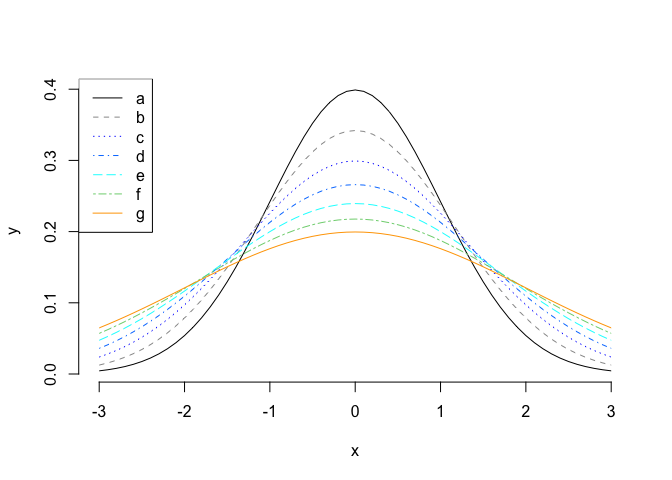 This is a basic example which shows you how to automatically select colors for individual groups by 3 major colors, blue, cyan and orange. The first argument represent group values. The second argument specify the order of \(a\) to \(g\), the third argument specifies that group \(a\) is assigned to the black color, and group \(b\) is assigned to the gray color.