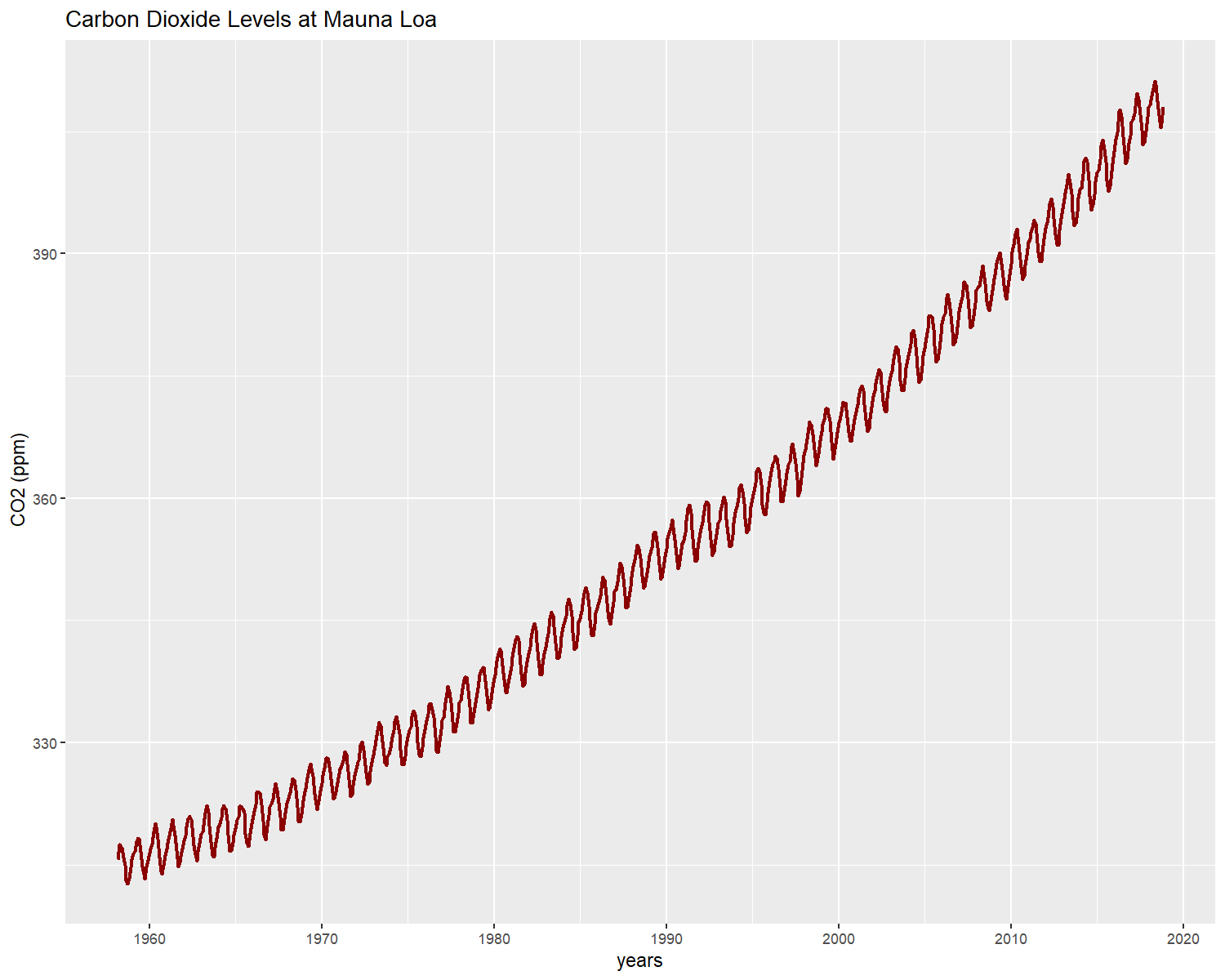 size = 1,main = "Carbon Dioxide Levels at Mauna Loa")