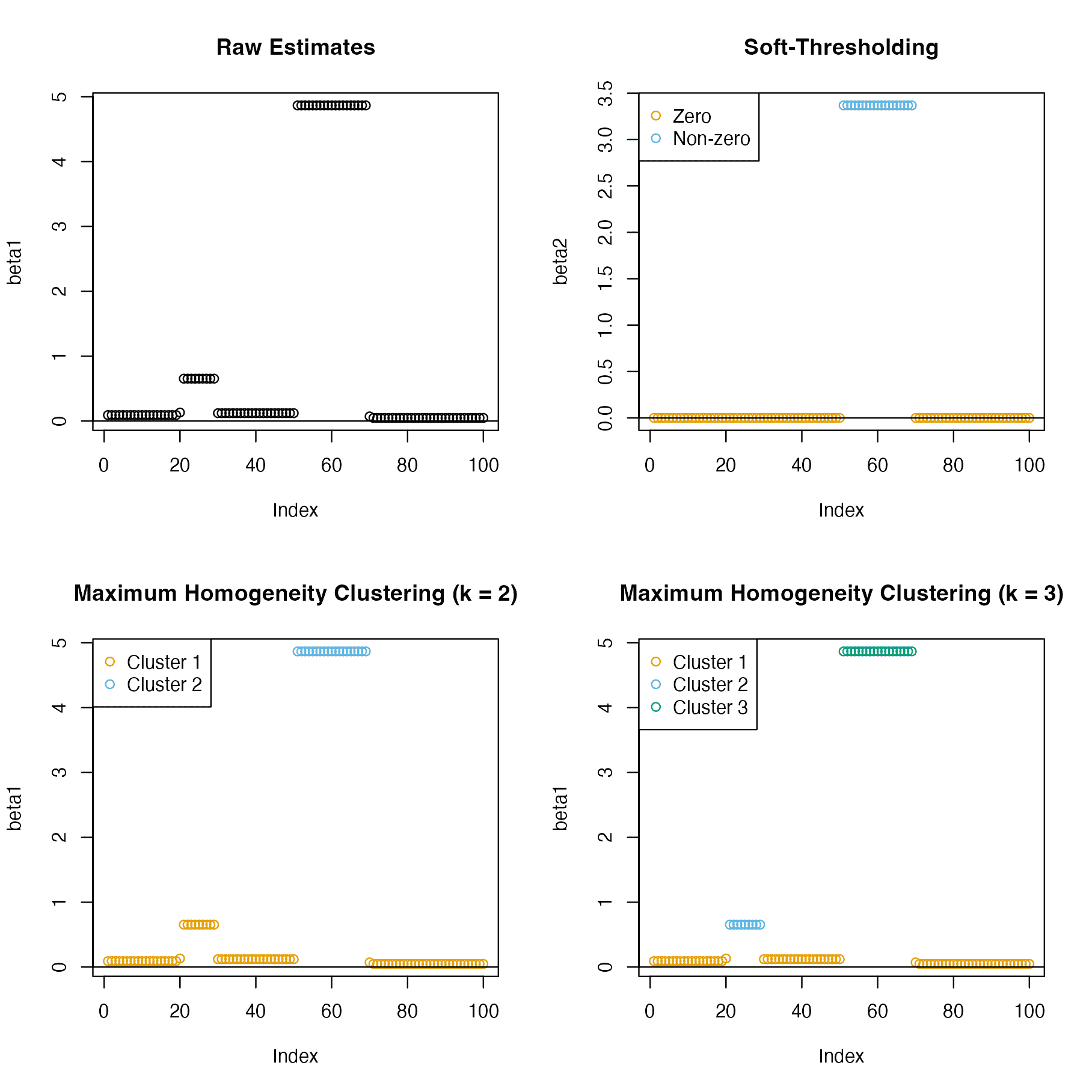 Implements the maximum homogeneity clustering algorithm for one-dimensional data described in W. D. Fisher (1958) <doi:10.1080/01621459.1958.10501479> via dynamic programming.