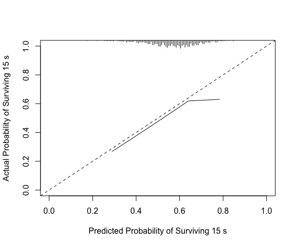ylab="Actual Probability of Surviving 15"))