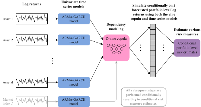 For the single conditional approach the general idea for a \(d\)-dimensional portfolio and a market index \(I\) is summarized in the flowchart below.