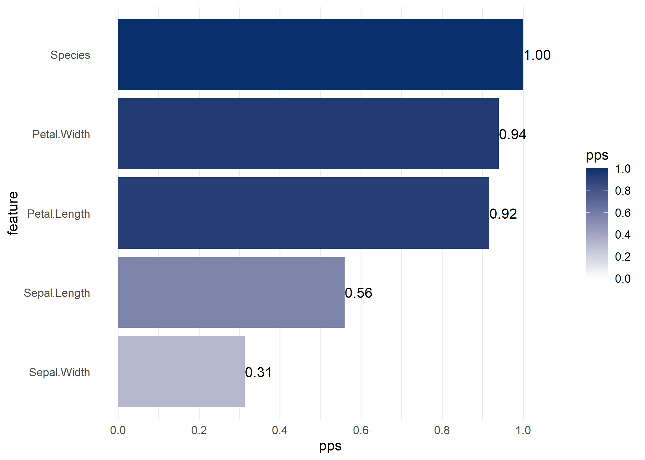 #> 8  Petal.Length  Sepal.Width            predictive power score 0.23769911