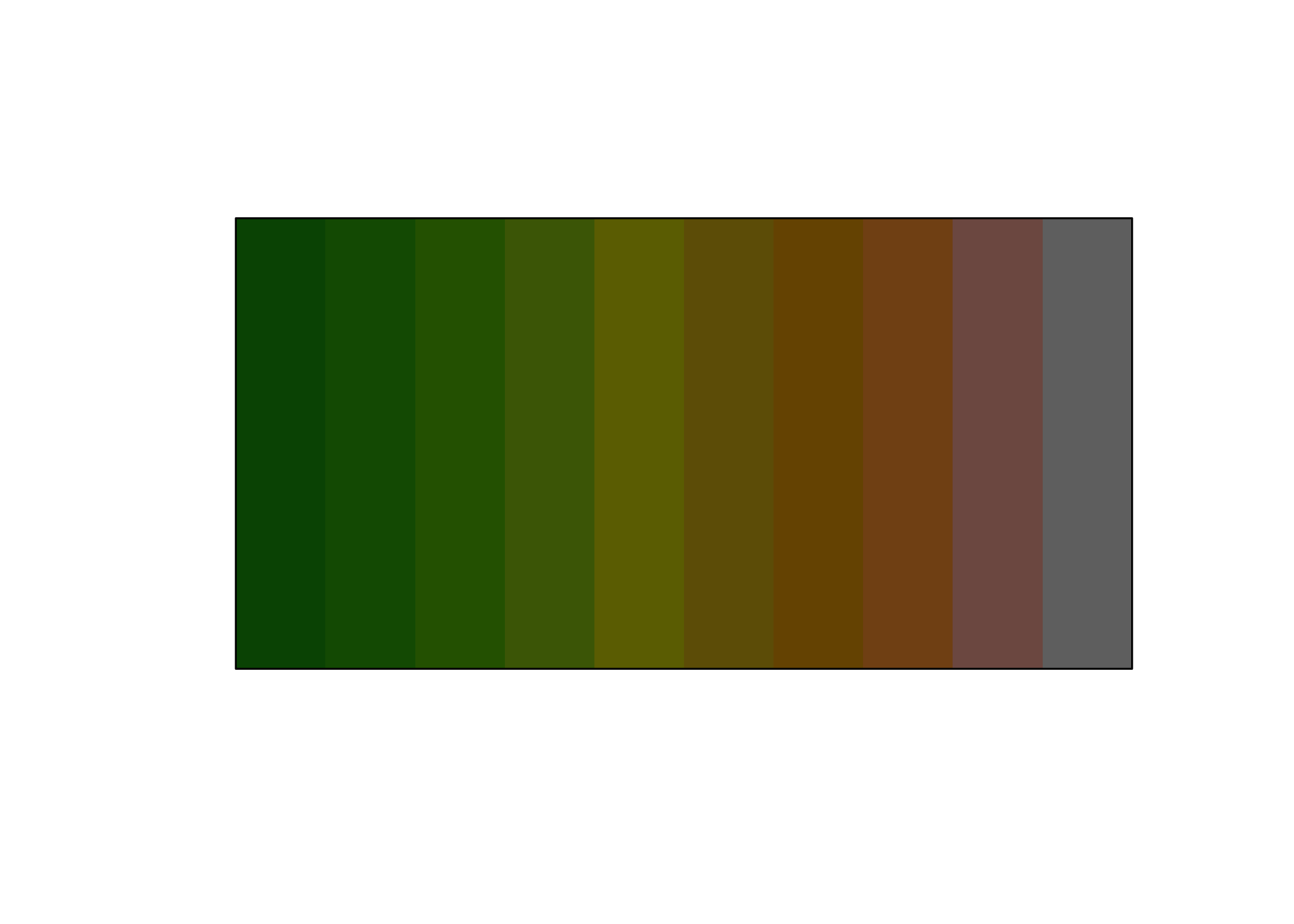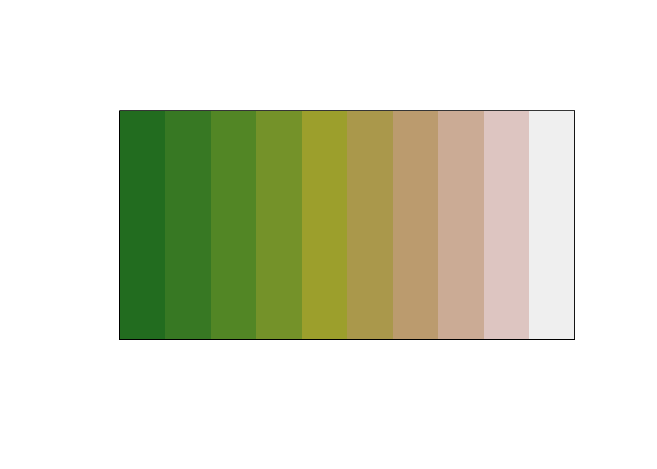 #> #00A600FF #2DB600FF #63C600FF #A0D600FF #E6E600FF #E8C32EFF #EBB25EFF #EDB48EFF #F0C9C0FF #F2F2F2FF