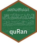The text and translations are all open source or licensed under Creative Commons by Tanzil and Al Quran Cloud. The licenses have been converted to MIT here, due to CRAN’s policy that the entire package use the same license throughout.