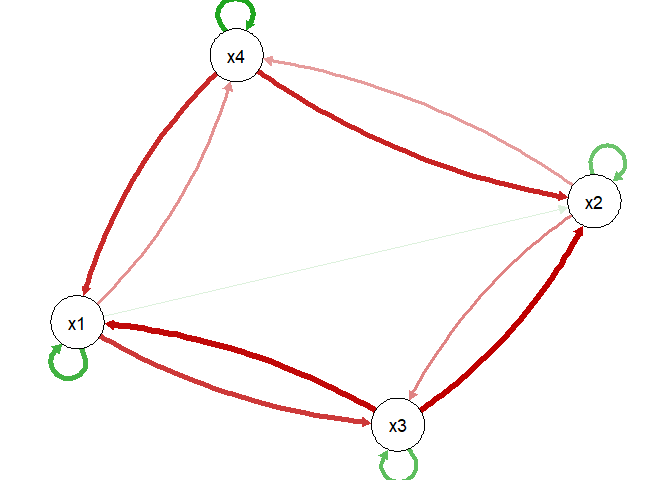qV1 <- quadVAR(data, vars = c("x1", "x2", "x3", "x4"))