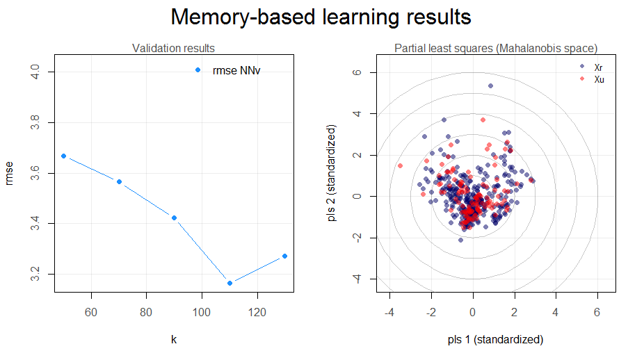 mbl: implements memory-based learning (MBL) for modeling and predicting continuous response variables. For example, it can be used to reproduce the famous LOCAL algorithm proposed by Shenk et al. (1997). In general, this function allows you to easily customize your own MBL regression-prediction method.