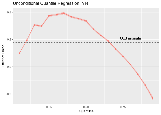 labs(title = "Unconditional Quantile Regression in R") +