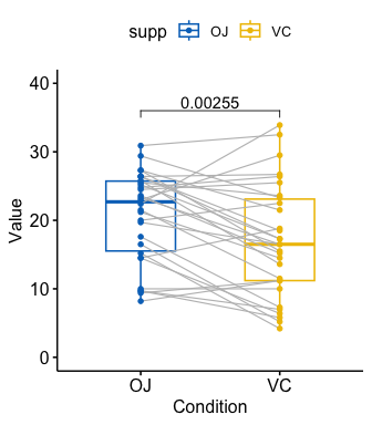 #> 1 len   OJ     VC        30    30      1.92  55.3 0.0606