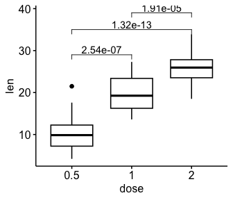 #> 1 0.5   len   1      null model    20      10.5    19 2.24e- 9
