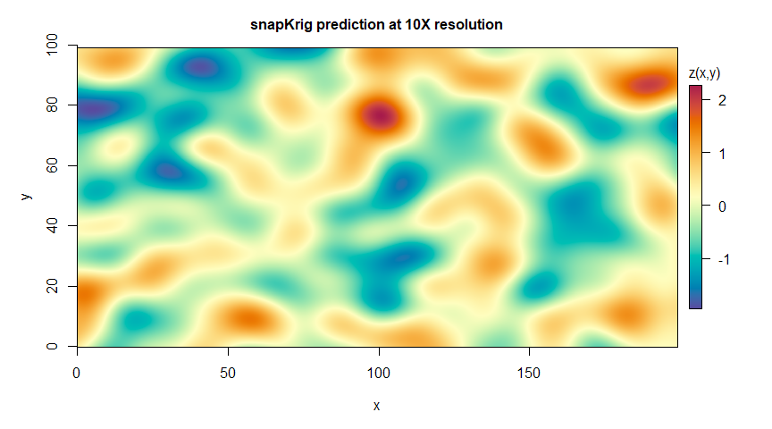 plot(g_pred, main='snapKrig prediction at 10X resolution')