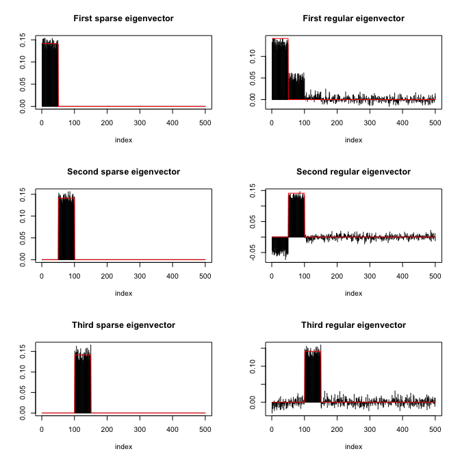 ?spEigenspEigen()We start by loading the package and generating synthetic data with sparse eigenvectors: