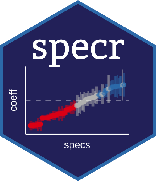 The goal of specr is to facilitate specification curve analyses (Simonsohn, Simmons & Nelson, 2020; also known as multiverse analyses, see Steegen, Tuerlinckx, Gelman & Vanpaemel, 2016). The package can be used to investigate how different (theoretically plausible) analytical choices affect outcome statistics within the universe of one single data set. It provides functions to setup, run, evaluate, and plot the multiverse of specifications. A simple example of how to use specr is provided below. For more information about the various functions and specific vignettes and use cases, visit the documentation.