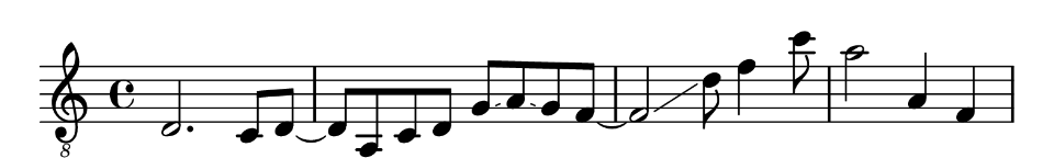 as_music("r4 a,8 c f d a f")