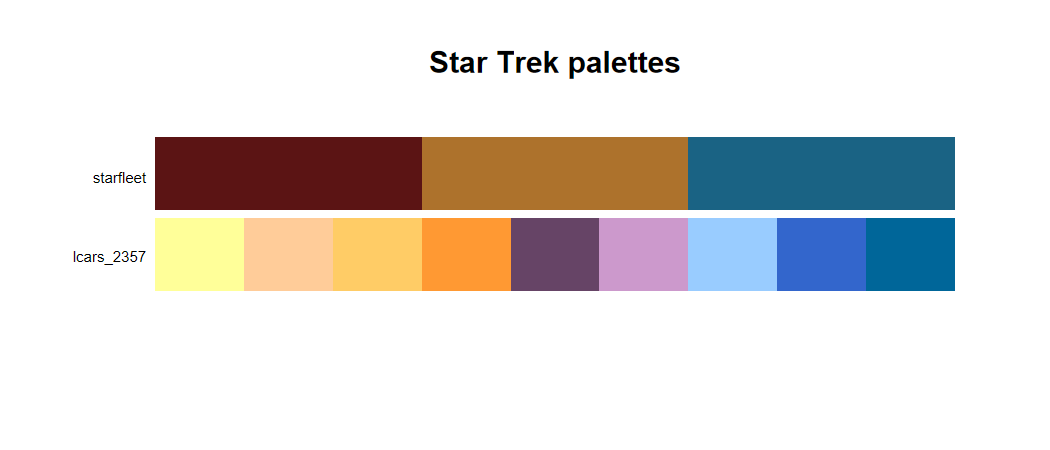 Predefined and customizable Star Trek themed color palettes and related functions.