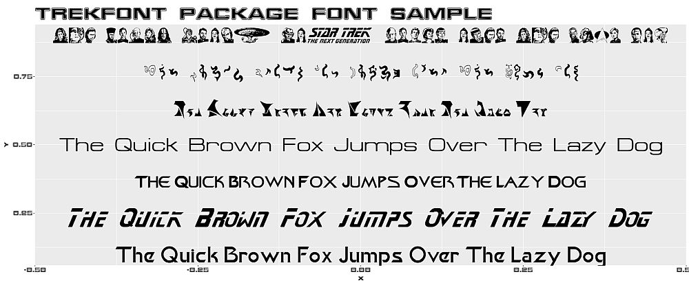 g <- ggplot() + theme_gray(base_family = font[8]) + ggtitle("trekfont package font sample")