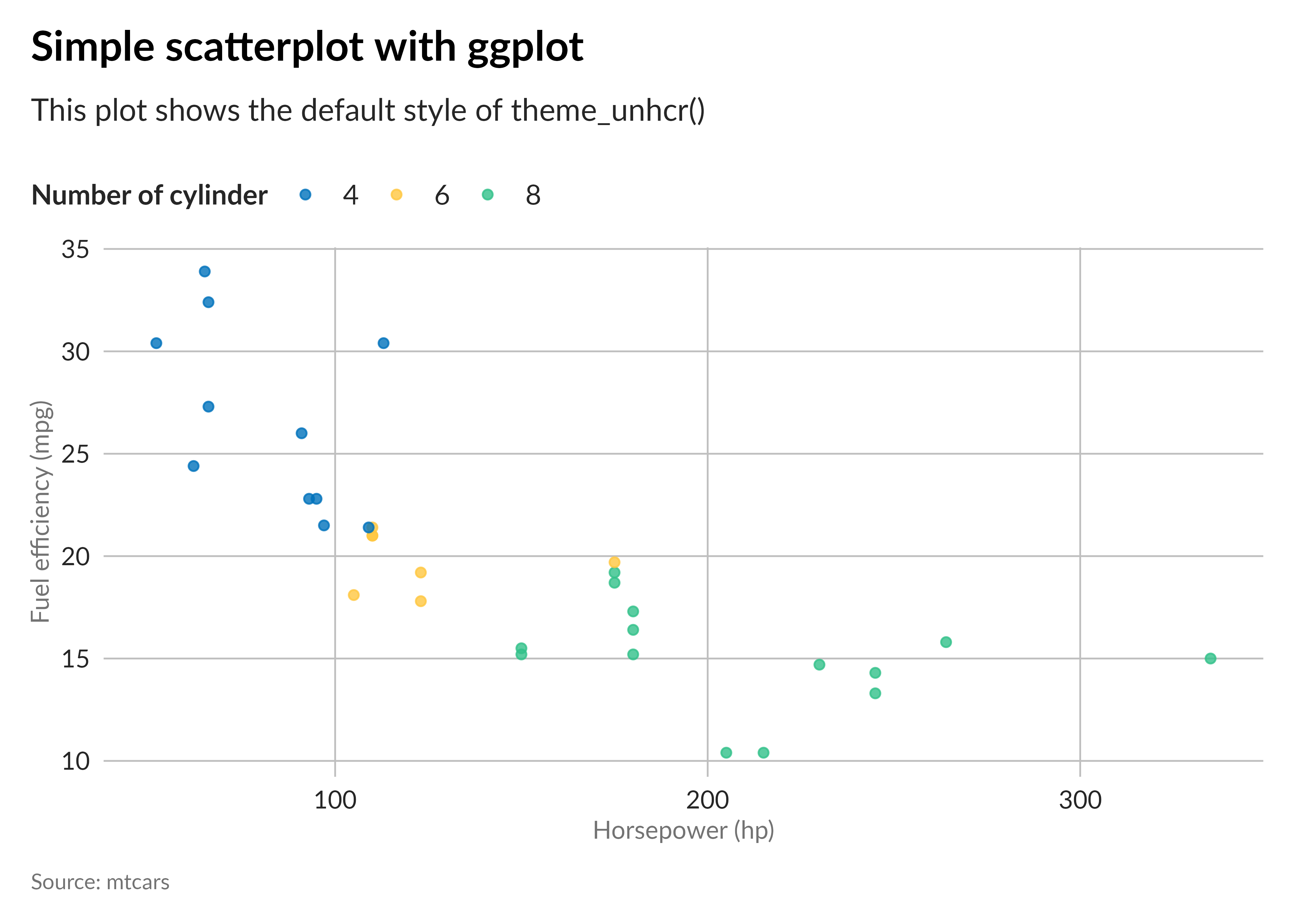 subtitle = "This plot shows the default style of theme_unhcr()",